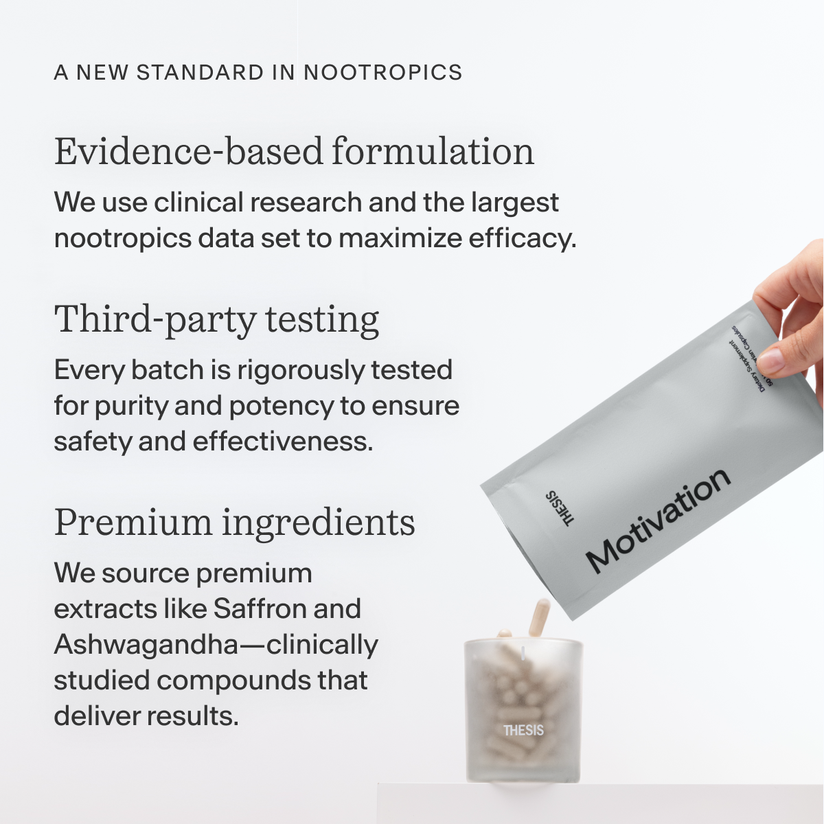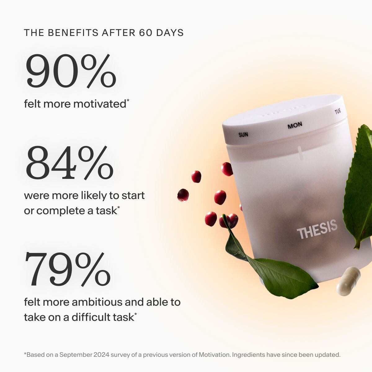 *These statements have not been evaluated by the Food and Drug Administration. The products and information on this website are not intended to diagnose, treat, cure or prevent any disease. The information on this site is for educational purposes only and should not be considered medical advice. Please speak with an appropriate healthcare professional when evaluating any wellness related therapy. Please read the full medical disclaimer before taking any of the products offered on this site. Thesis is for adults aged 18 and older. If you are pregnant or undergoing treatment for a medical condition, please consult your physician before taking Thesis.