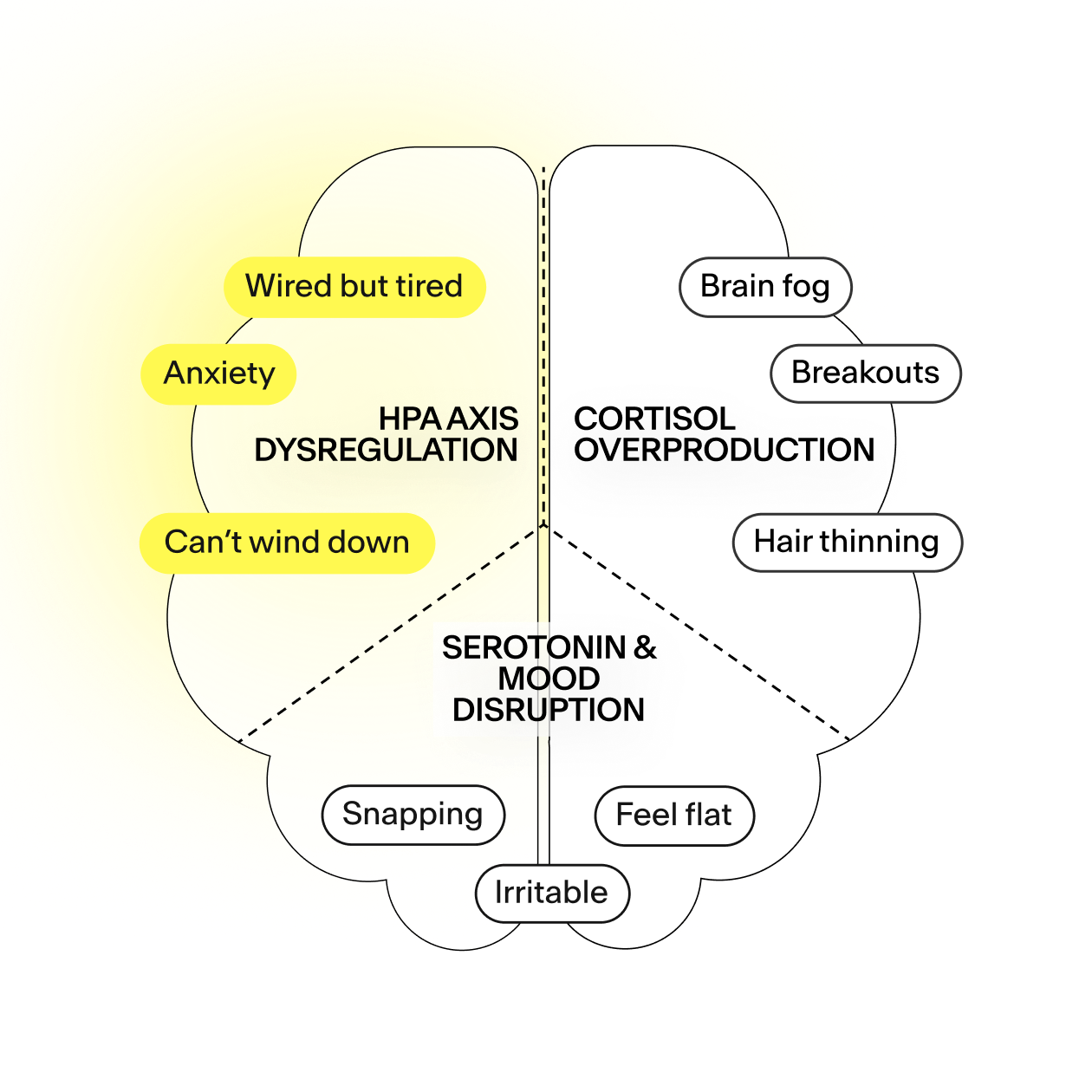 Your hypothalamic-pituitary-adrenal axis controls when cortisol spikes and when it stops. Stress, months or years of it, breaks this feedback loop. Cortisol stays elevated even when the stressor is gone. Your body literally forgets how to calm down.*